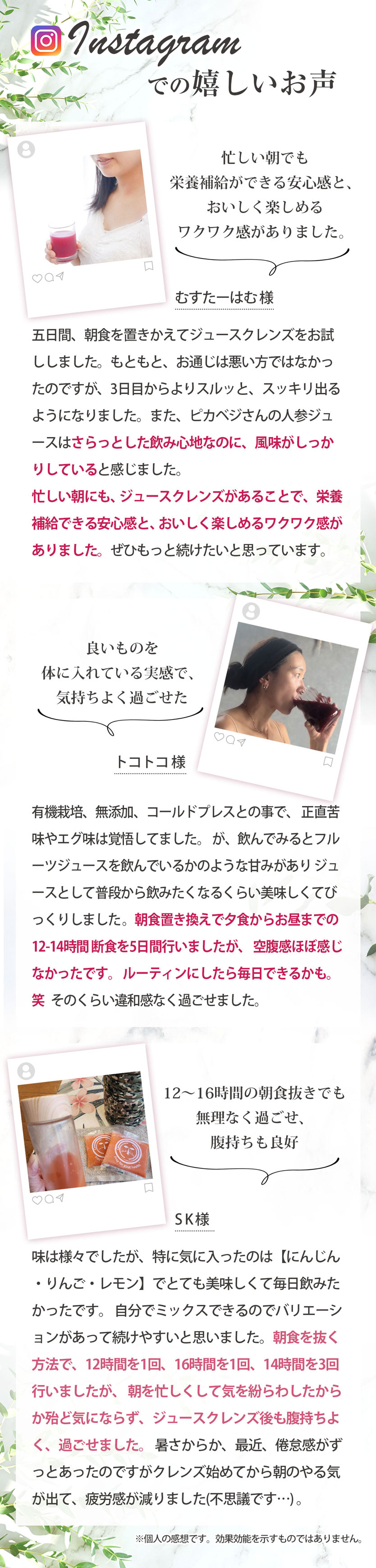 ※個人の感想であり、実感には個人差があります。効能・効果を保証するものではありません。